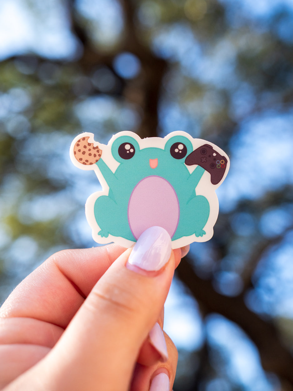 Momo loves him some video games and snacks! 🐸🎮